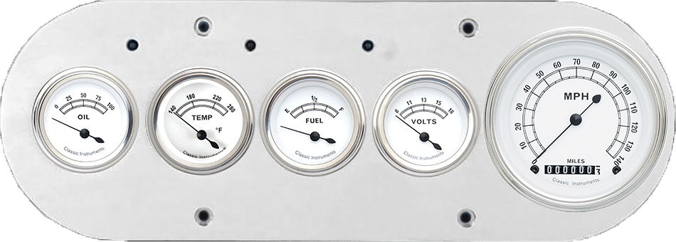 Includes aluminum gauge panel, Classic Instruments gauges & LED lights (turn signal & high beam indicators).