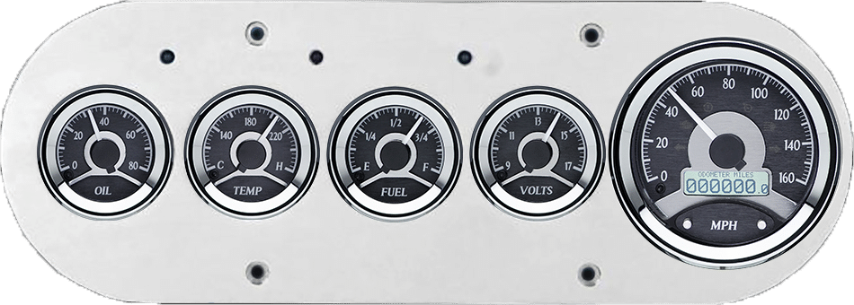 Includes aluminum dash insert, Dakota Digital VHX-1050 Black Alloy 5 gauge round kit.