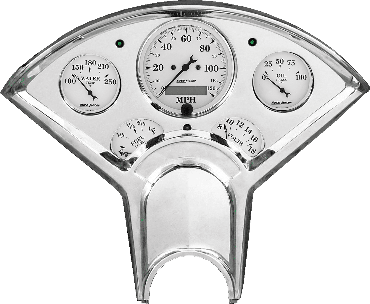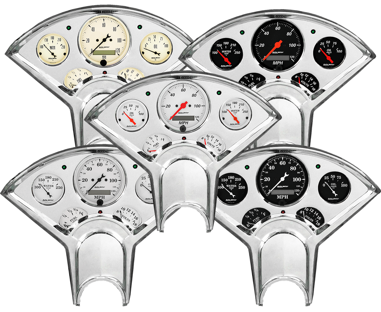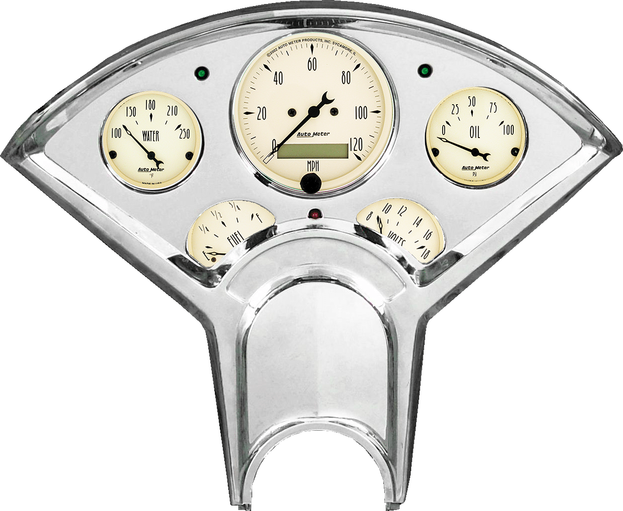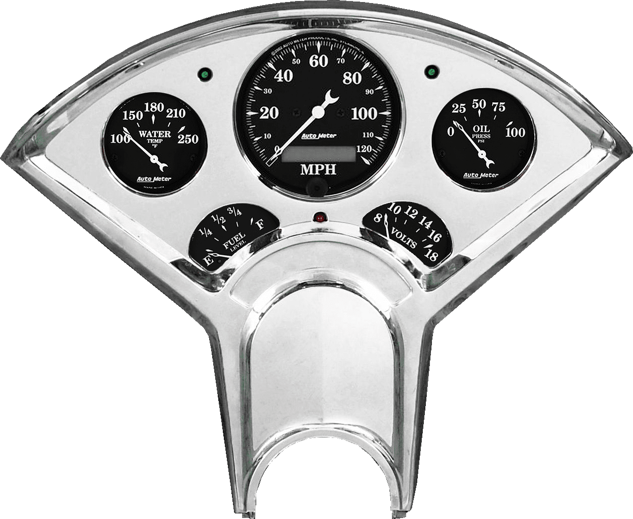 Includes aluminum dash insert, Auto Street Rod series gauges & turn signal/high beam indicators.