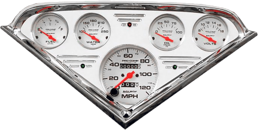 Includes aluminum gauge panel, Auto Meter Ultra-Lite gauges, & LED lights (turn signal & high beam indicators).