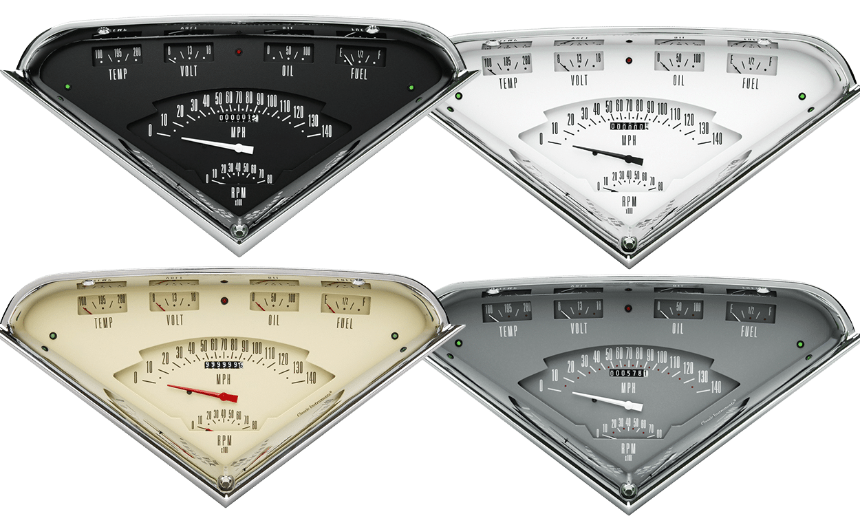 Classic Instruments lends its style and quality to the 1955-1959 Chevrolet Task-Force Pickups, Suburbans and Panel Trucks. Tach-Force packages are complete retrofit units, incorporating a tachometer and LED lighting, while retaining an original look.