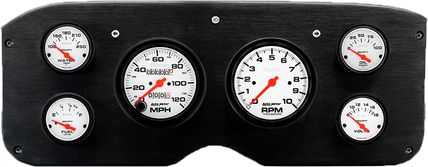HIncludes aluminum gauge panel, Auto Meter Phantom gauges, & LED lights (turn signal & high beam indicators).