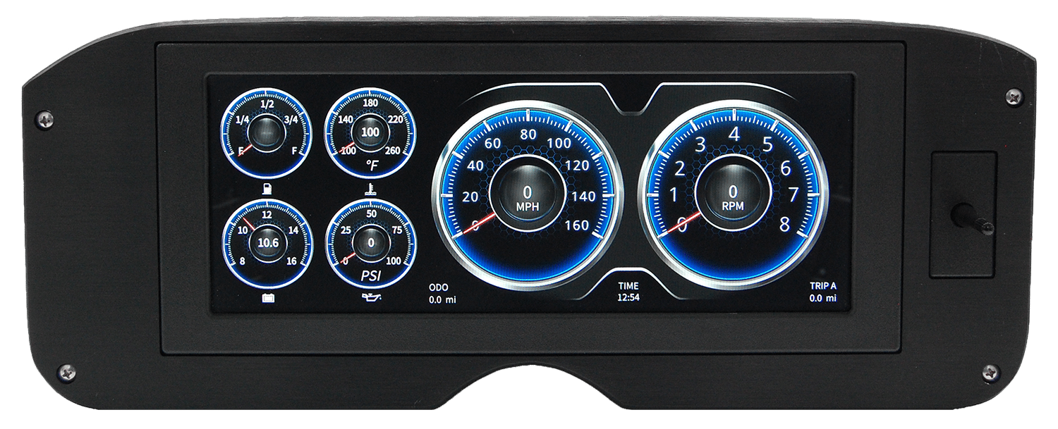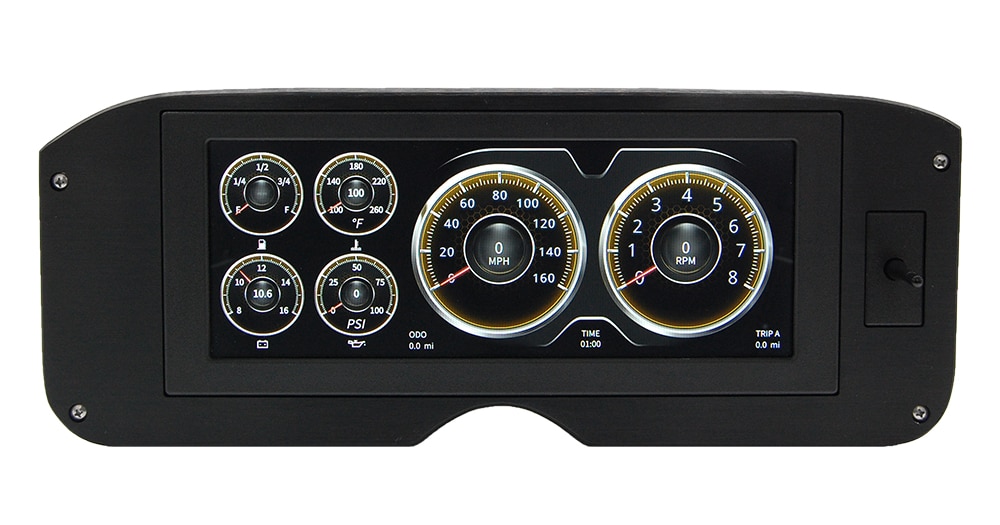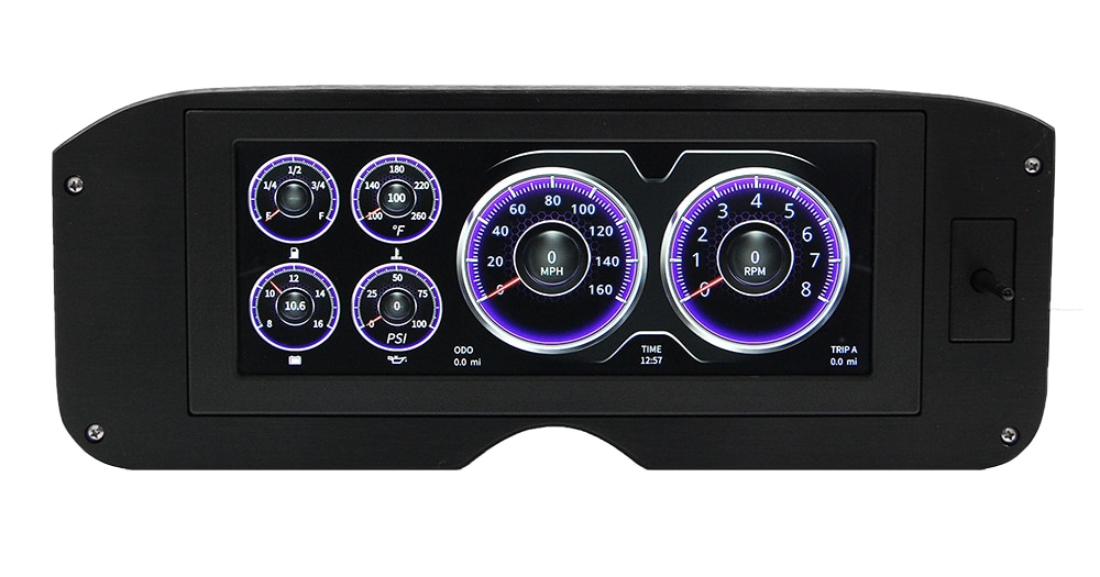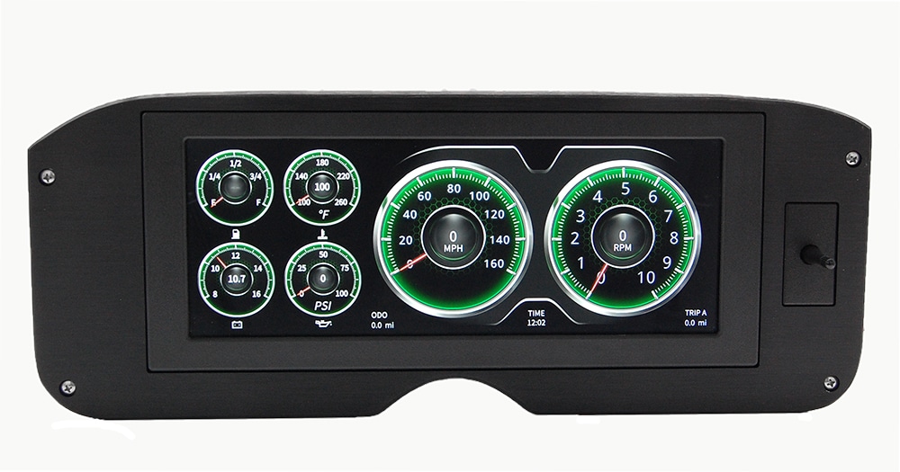 Instrumentation is the focal point of any interior. Make your dash stand out from the crowd with the new Universal InVision Digital Dash from AutoMeter. This complete dash system with four user selectable screens is a one model, universal solution for your entire dash. Monitor the speedometer, tachometer, fuel level, oil pressure, water temperature, and volts all in one place. Upgrade your dash with the latest, modern LCD offering from AutoMeter.