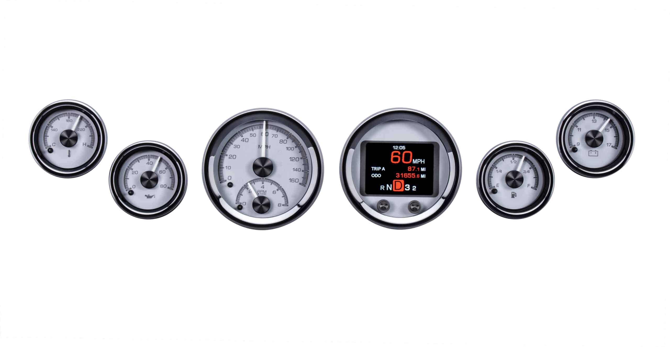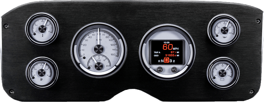 Includes aluminum gauge panel & Dakota Digital HDX-2060 Black Alloy 6 gauge round kit.