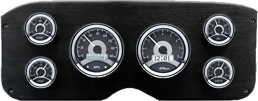 Includes aluminum dash insert, Dakota Digital VHX-1060 Black Alloy 6 gauge round kit.