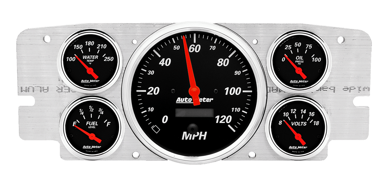 Under Dash Aluminum 4 Gauge Panel w/ Auto Meter Street Rod Series Gauges