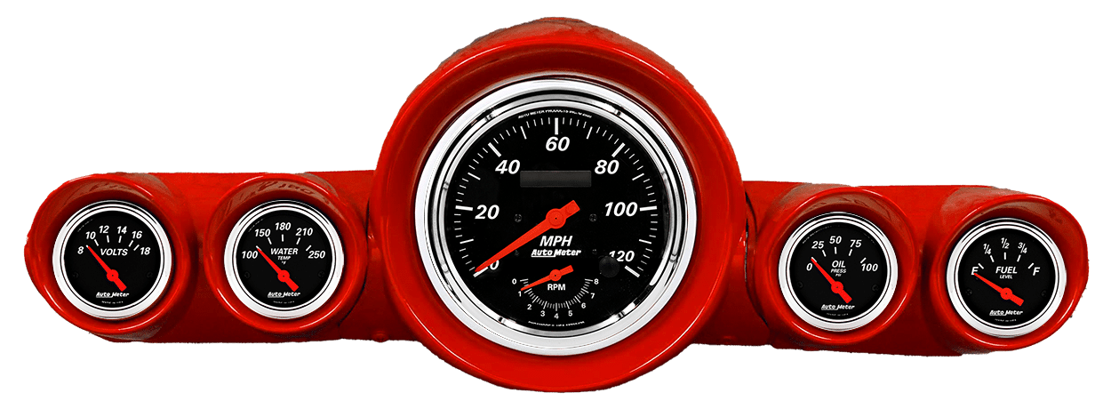 1954-1955 Chevy Truck Aluminum Adapter Rings w/ Auto Meter Street Rod Series Gauges