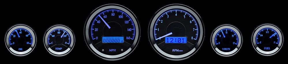 Includes aluminum dash insert, Dakota Digital VHX-1060 Black Alloy 6 gauge round kit.