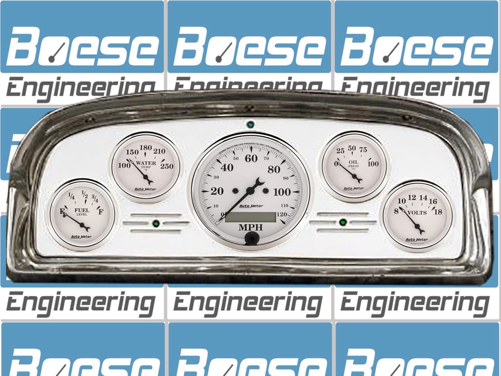 1951-1952 Plymouth Car Aluminum Gauge Panel w/ Auto Meter Arctic White Gauges