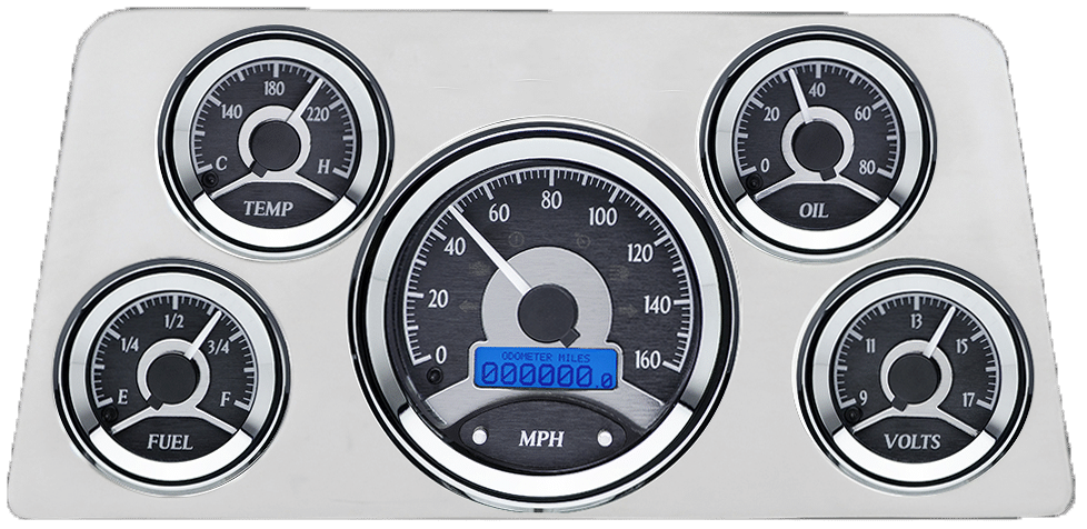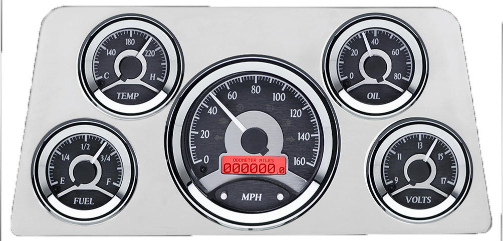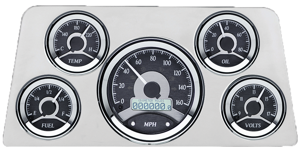1940 Chevy Car Billet Aluminum Gauge Panel w/ Dakota Digital VHX-1050 Silver Alloy Gauges