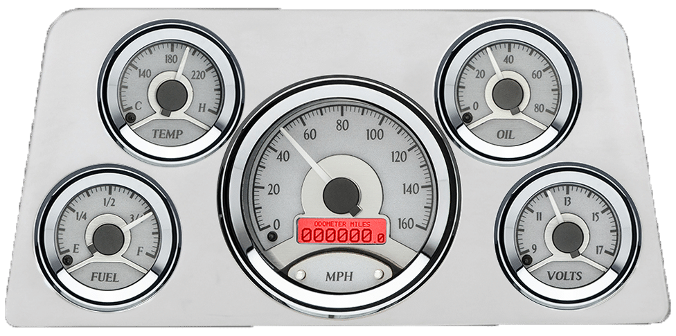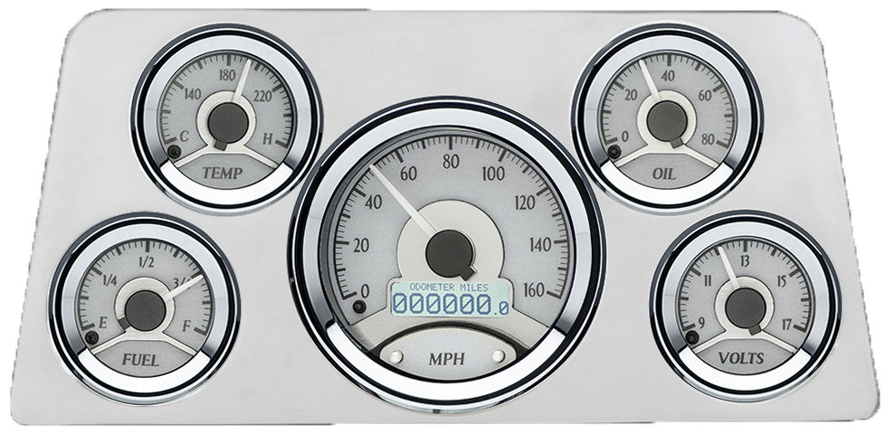 Includes aluminum dash insert, Dakota Digital VHX-1050 Silver Alloy 5 gauge round kit.