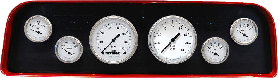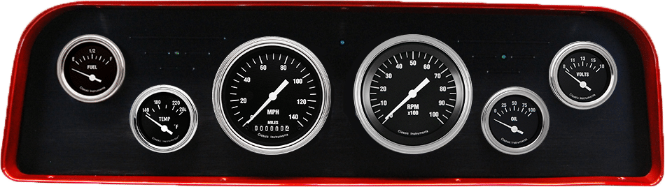 Includes aluminum gauge panel, Classic Instruments gauges & LED lights (turn signal & high beam indicators).