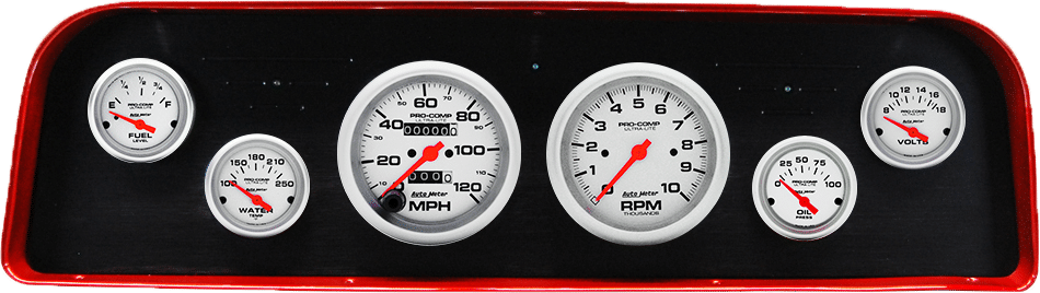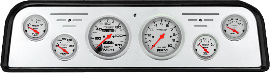 Includes aluminum gauge panel, Auto Meter Ultra-Lite gauges, & LED lights (turn signal & high beam indicators).