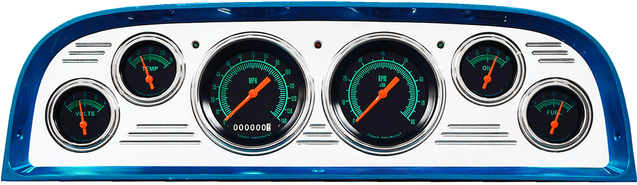 Includes aluminum dash insert, Classic Instruments gauges & LED lights (turn signal & high beam indicators).