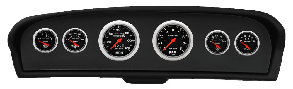 Direct Fit replacement for OEM instrument bezel in 1961-1966 Ford Truck made from thermoformed UV protected ABS material with Auto Meter Sport Comp gauges.