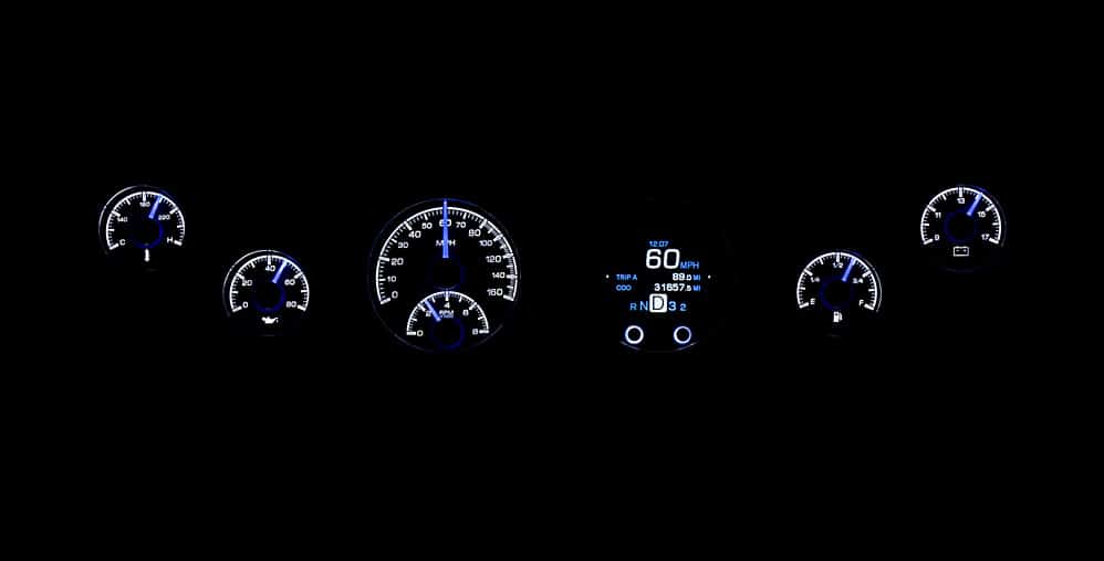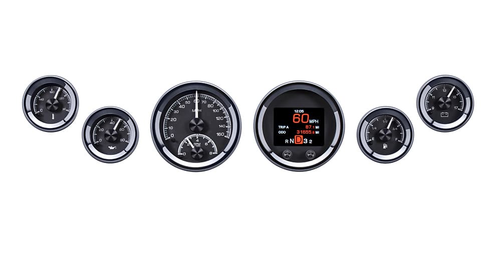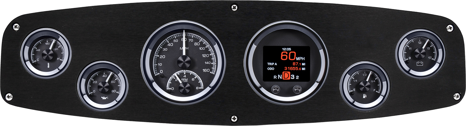 Includes aluminum gauge panel & Dakota Digital HDX-2060 Black Alloy 6 gauge round kit.