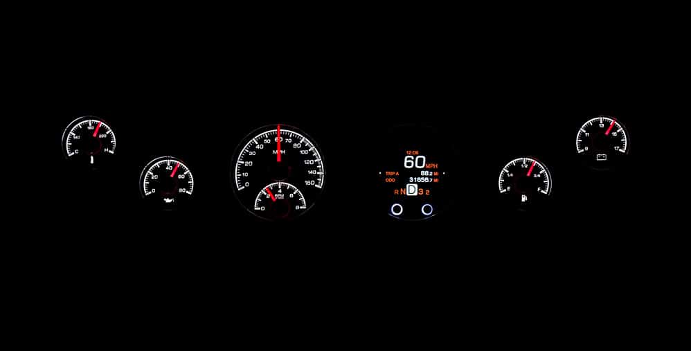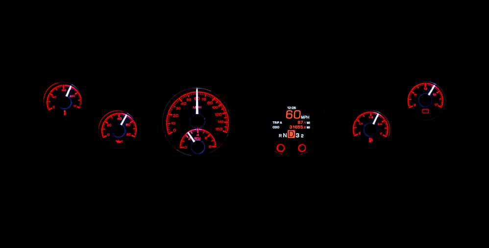 | ·Each analog gauge sweep contains a red LED indicator for quick notice of a warning condition (except speedometer) |