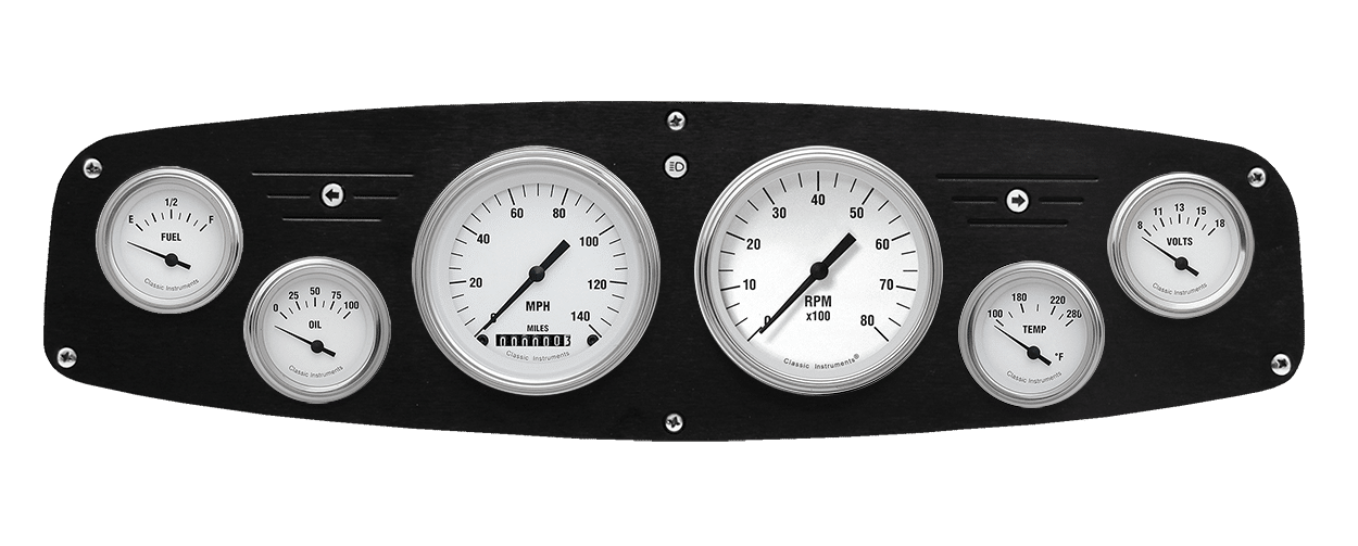 Includes aluminum dash insert, Classic Instruments gauges & LED lights (turn signal & high beam indicators).