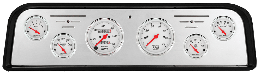 1954-1955 Chevy Truck Aluminum Adapter Rings w/ Auto Meter Street Rod Series Gauges