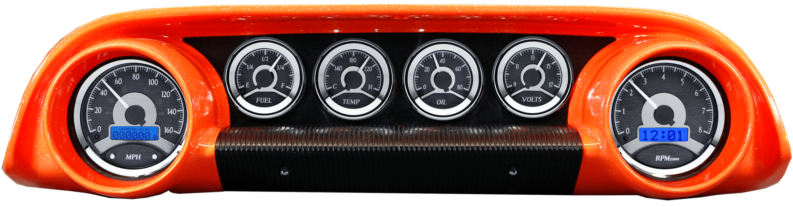 Includes aluminum dash insert, Dakota Digital VHX-1060 Black Alloy 6 gauge round kit.