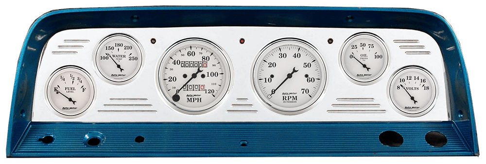 1951-1952 Plymouth Car Aluminum Gauge Panel w/ Auto Meter Arctic White Gauges