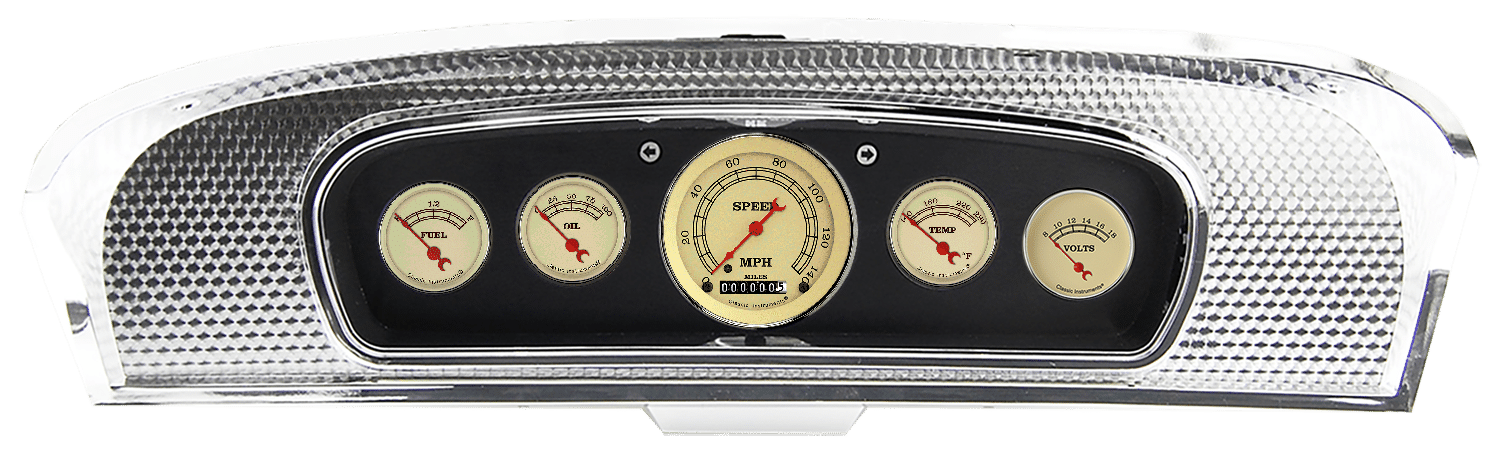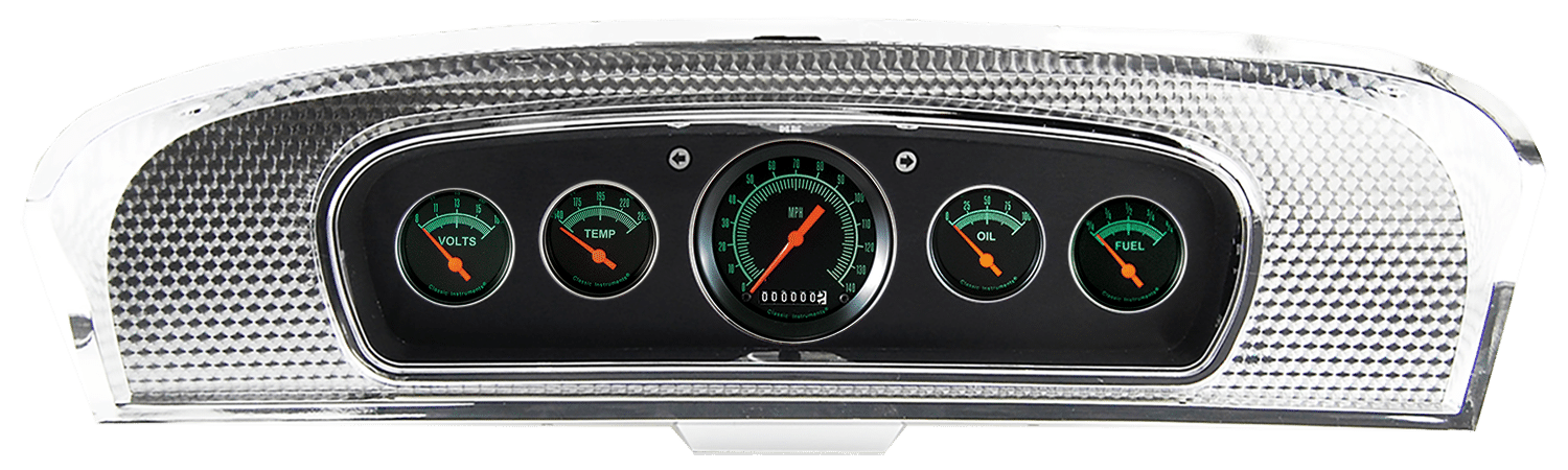 Includes aluminum dash insert, Classic Instruments gauges & LED turn signal indicators.