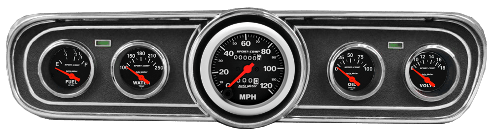 Includes adapter panels, Auto Meter Sport-Comp gauges, & turn signal lights.