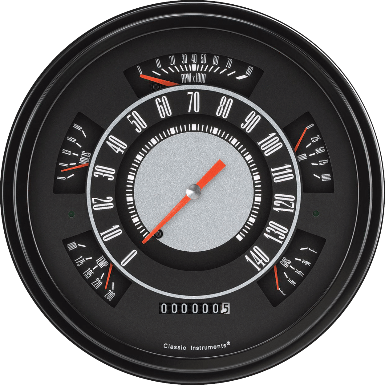 1966-77 Original Bronco Six-Instrument (Speedometer, Tachometer, Fuel [240-33 ohm], Temperature, Voltage, and Oil) Package. • Lighting • LEDs • Warm white in color • Molded “light intensifier” ring for bright, even lighting • Built-in LED dimmer • No additional LED dimmer is necessary • The brightness of the LEDs can be adjusted with a potentiometer on the back of the cluster • Green turn signal indicators in the left and right sides of cluster • Red LED “halo” high beam indicator hidden at the top of the tachometer • Molded plastic back housing Zeus Speedometer Technology built-in • Push button calibration • Built-in ECM signal filter switch • SNPB included • Standard Ford sender kit included, SNFD *Model-specifc mounting hardware included.Additional information