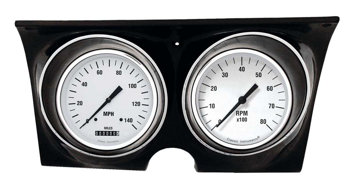 Includes aluminum adapter rings & Classic Instruments White Hot gauges.