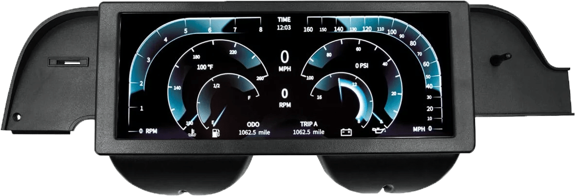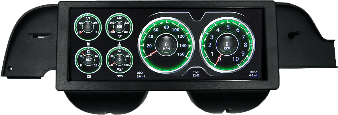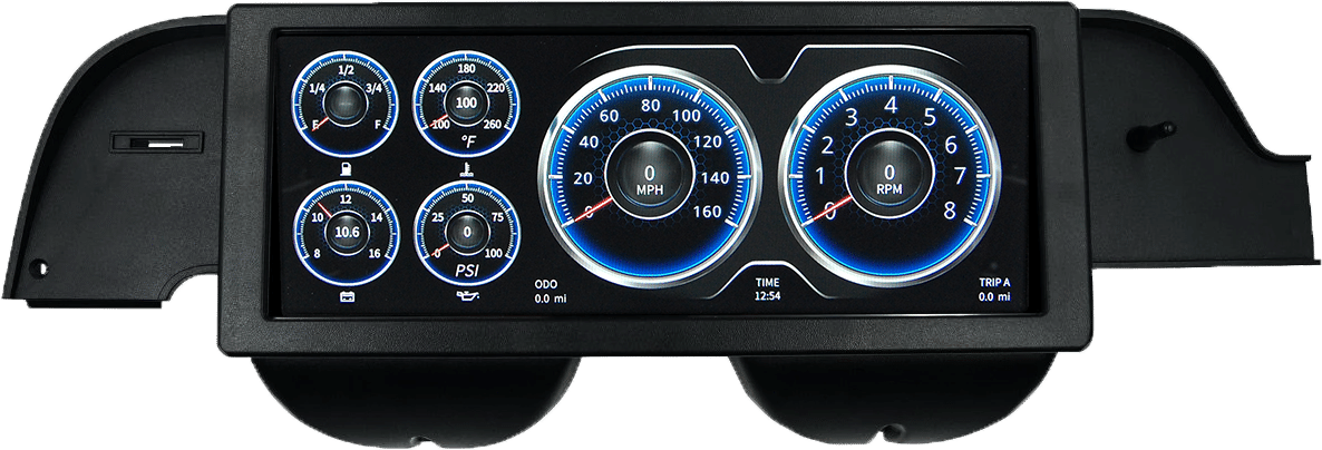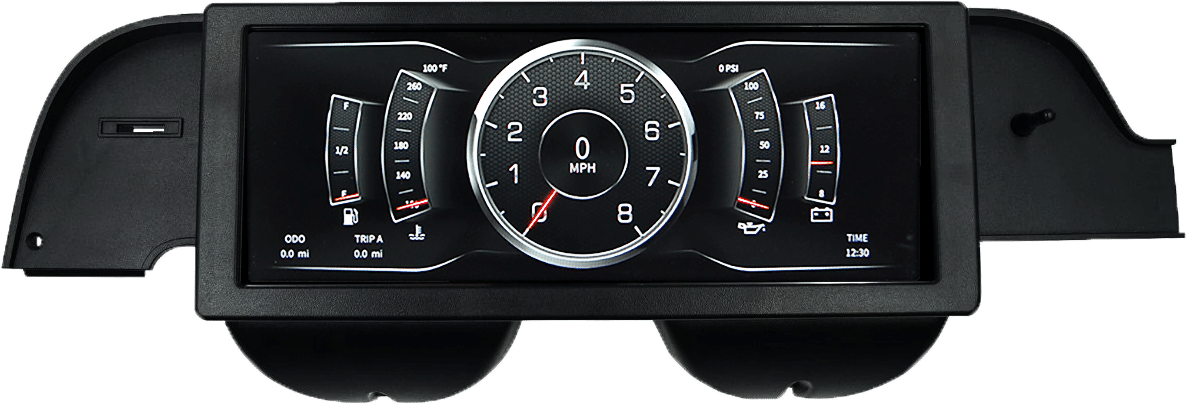 - Direct-fit instrumentation solution for 1967 to 1968 Ford Mustang that monitors speedometer, tachometer, water temperature, oil pressure, fuel level, and volts all in a high resolution and colorful display