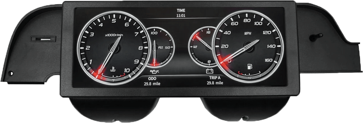 - Monitors speedometer, tachometer, fuel level, oil pressure, water temperature, and volts all in a high resolution and colorful display