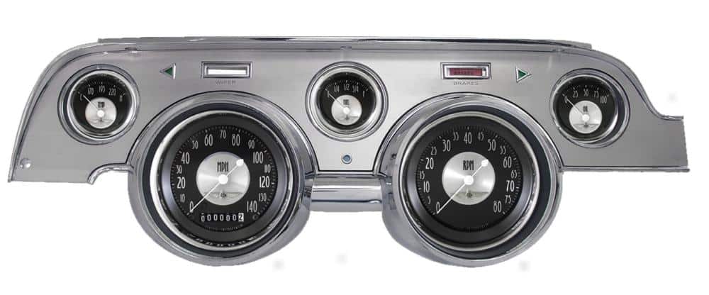 The 67-68 Mustange package includes: An electronic 140 MPH programmable speedometer, 8,000 RPM tachometer, 75-10 ohms fuel gauge (works w/ stock fuel sender), water temperature, and oil pressure. The package comes assembled & prewired by hand in a premium quality OEM dash bezel ready to bolt to your dash. Package includes Ford water temperature sender, oil pressure sender, & pulse signal generator for the programmable electronic speedometer.Additional information