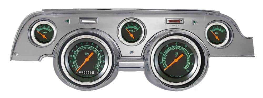 The 67-68 Mustange package includes: An electronic 140 MPH programmable speedometer, 8,000 RPM tachometer, 75-10 ohms fuel gauge (works w/ stock fuel sender), water temperature, oil pressure, and oil pressure. The package comes assembled & prewired by hand in a premium quality OEM dash bezel ready to bolt to your dash. Package includes Ford water temperature sender, oil pressure sender, & pulse signal generator for the programmable electronic speedometer.Additional information