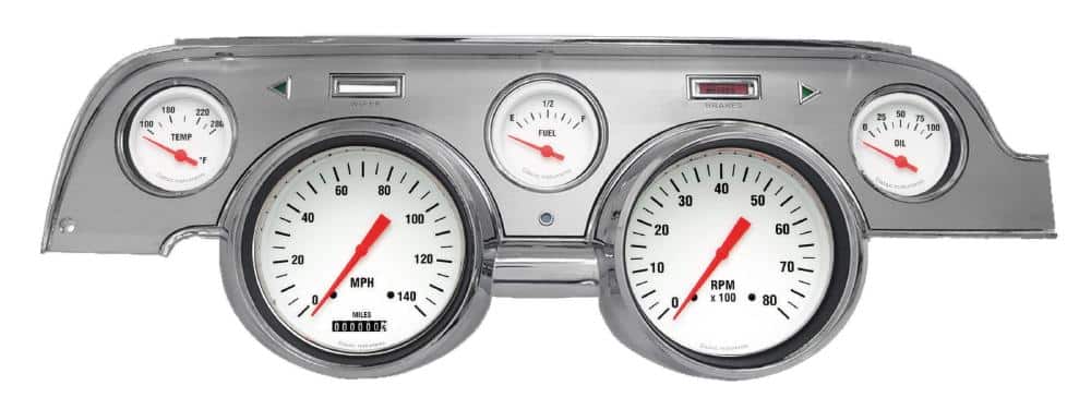 The 67-68 Mustange package includes: An electronic 140 MPH programmable speedometer, 8,000 RPM tachometer, 75-10 ohms fuel gauge (works w/ stock fuel sender), water temperature, and oil pressure. The package comes assembled & prewired by hand in a premium quality OEM dash bezel ready to bolt to your dash. Package includes Ford water temperature sender, oil pressure sender, & pulse signal generator for the programmable electronic speedometer.Additional information