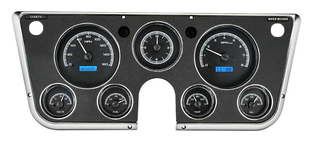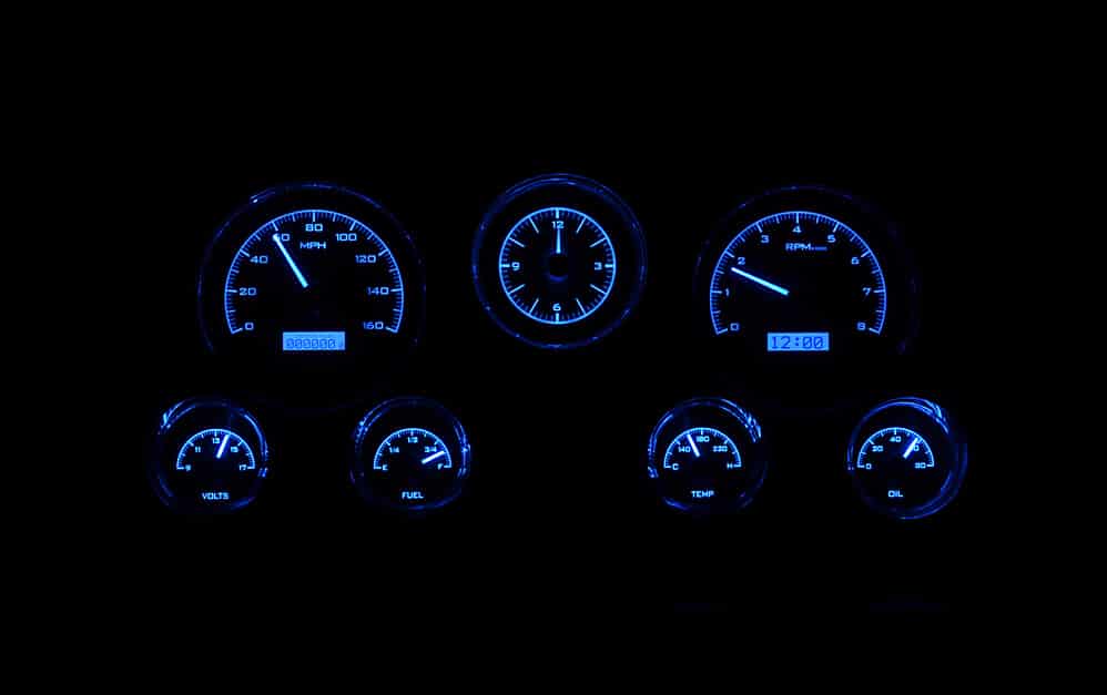 1967-1972 Chevy Pickup Direct Fit VHX Instruments by Dakota Digital – Black Alloy w/ Blue Lighting