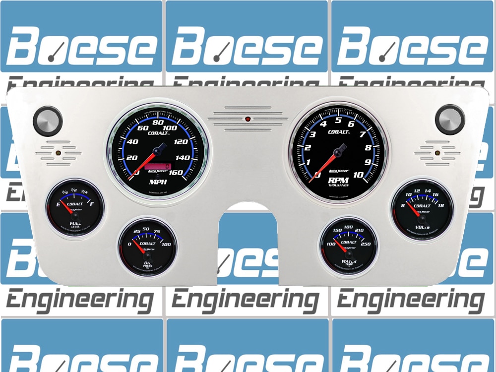 Includes aluminum dash insert, Auto Meter Cobalt gauges, & turn signal/high beam indicators.