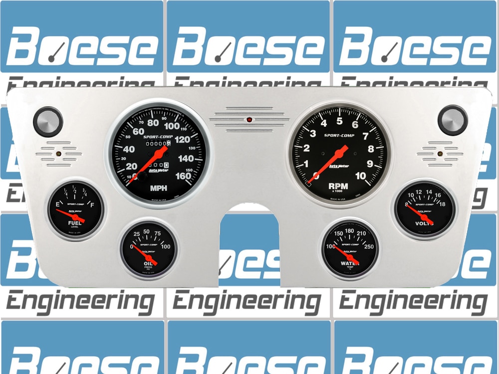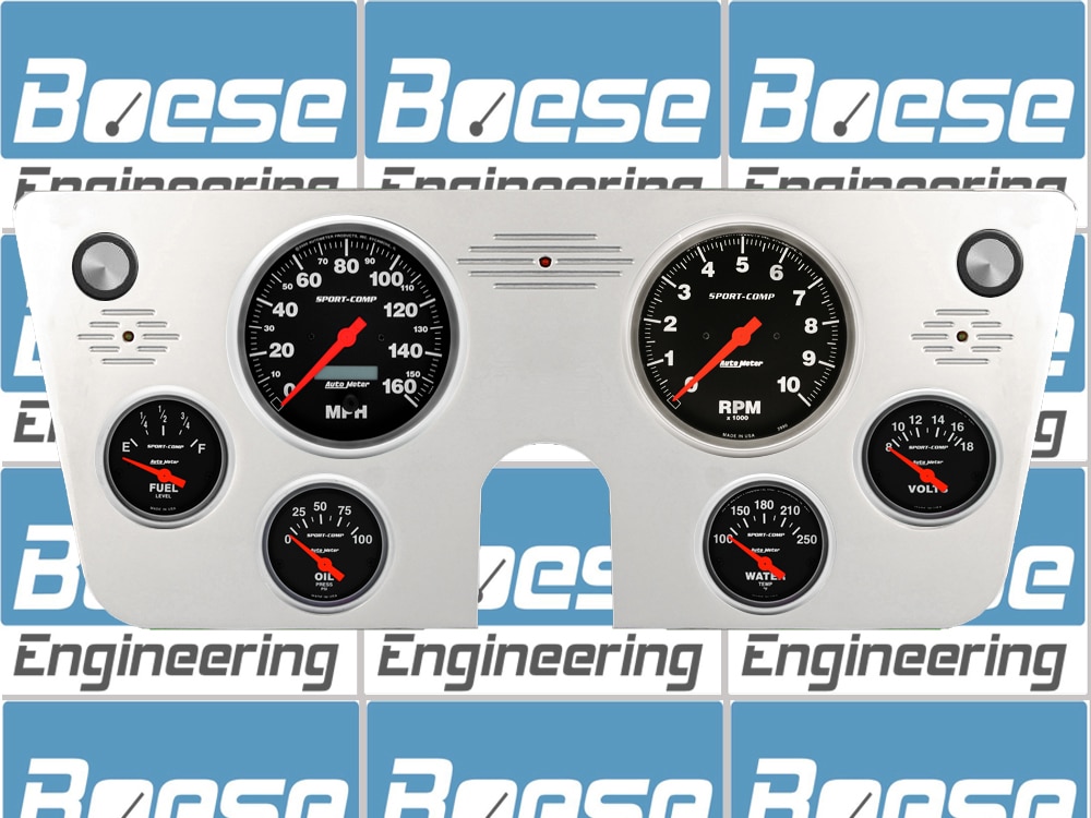 Includes aluminum dash insert, Auto Meter Sport-Comp gauges, & turn signal/high beam indicators.