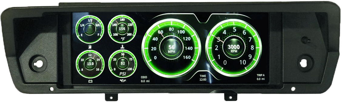 - Direct-fit instrumentation solution for 1972 to 1976 Plymouth/Dodge A-Body (Duster, Demon, Dart, Scamp, & Valiant) that monitors speedometer, tachometer, water temperature, oil pressure, fuel level, and volts all in a high resolution and colorful display