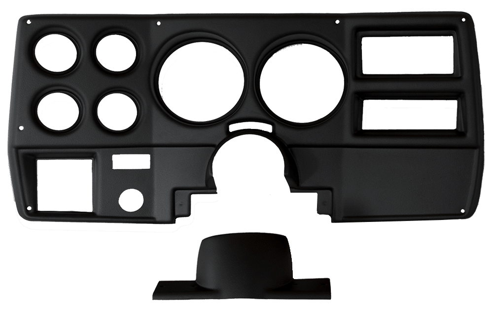 Direct Fit replacement for OEM instrument bezel in Chevrolet C/K Series Truck 73-83, Chevy/GMC Suburban and K5 Blazer 73-91 made from thermoformed UV protected ABS material.