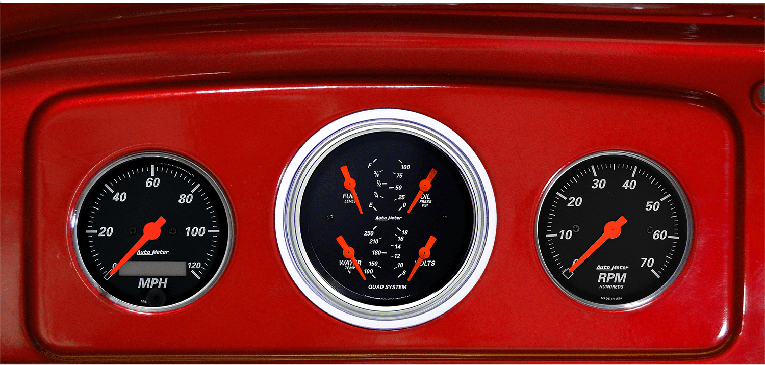 Under Dash Aluminum 4 Gauge Panel w/ Auto Meter Street Rod Series Gauges