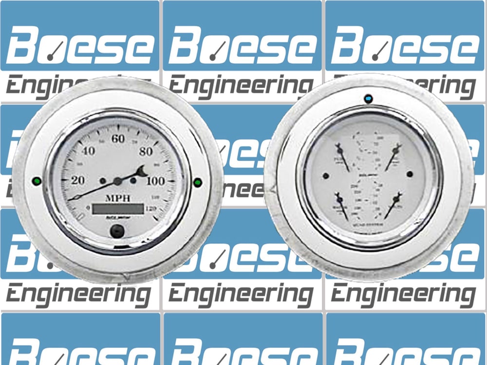 Includes polished aluminum gauge panels, Auto Meter Old Tyme White 3 3/8″ Quad gauge kit, & led lights. Gauges include electronic speedometer & electric oil, water, volts, & fuel. All necessary sending units are included.Additional information
