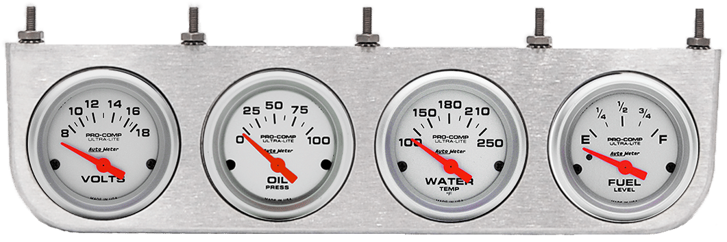 4 Gauge Under Dash Aluminum Panel w/ 2 1/16″ Auto Meter UItra-Lite Gauges