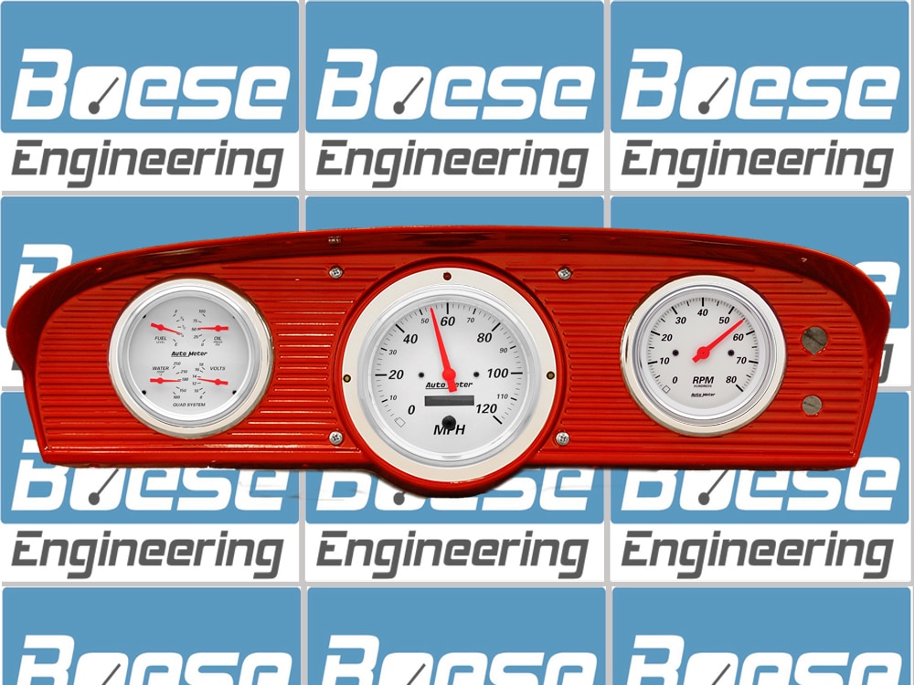 Includes aluminum adapter rings, Auto Meter Arctic White electronic speedometer, tachometer, & quad gauge. Quad gauge includes oil, water, volts, & fuel. Sending units are included for the oil pressure, water temperature, & fuel gauges.STOCK BEZEL NOT INCLUDED!Additional information