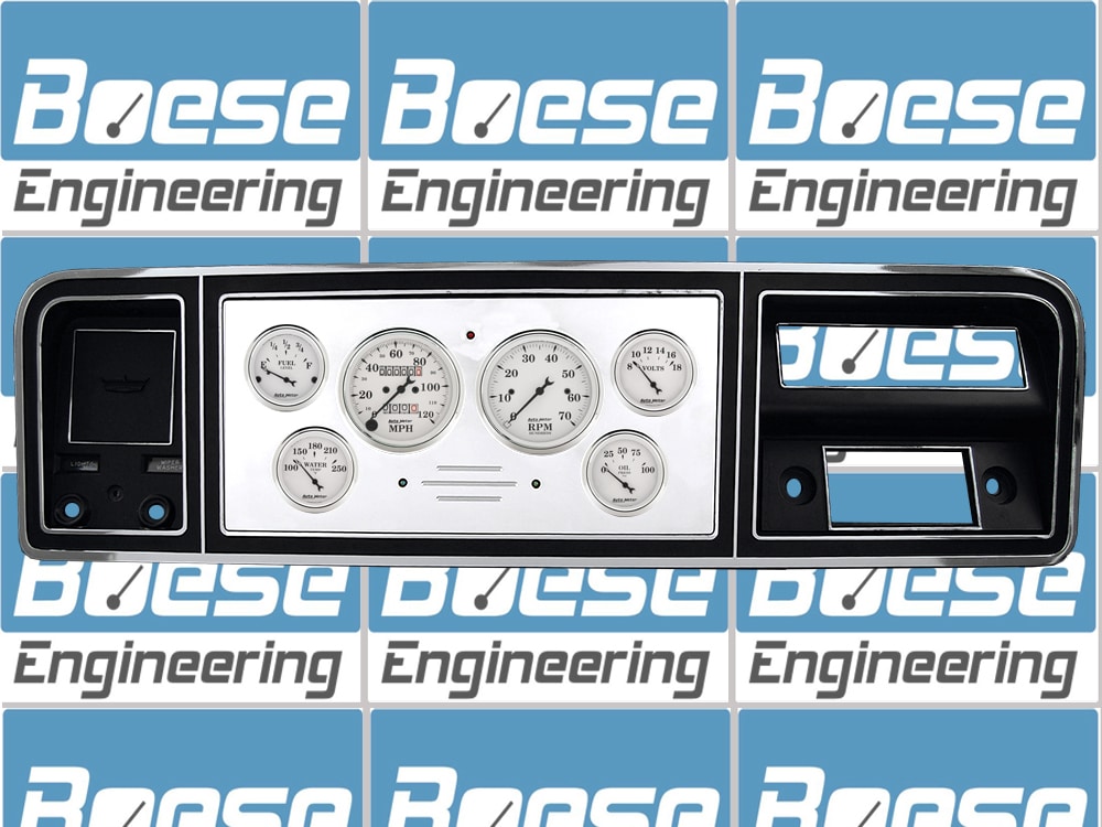 Includes polished aluminum gauge panel, Auto Meter Old Tyme White gauges, & LED lights. Gauges include mechanical speedometer & electric tachometer, oil, water, volts, & 75-10 ohm fuel (works w/ stock sender). Sending units are included for the oil pressure & water temp. gauges. Cutting required. Stock bezel not included.Additional information