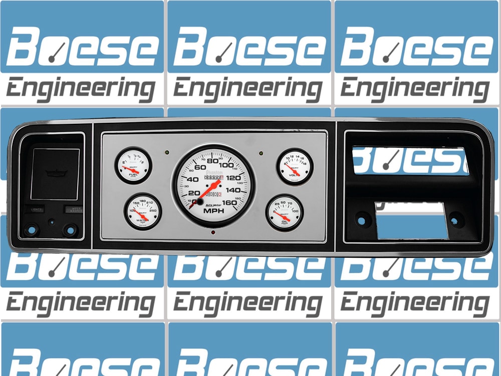 Includes polished aluminum gauge panel, Auto Meter Phantom gauges, & LED lights. Gauges include 5″ mechanical speedometer, 2 1/16″ oil, water, volts, & 75-10 ohm fuel (works w/ stock sender). Sending units are included for the oil pressure & water temp. gauges. Cutting required. Stock bezel not included.Additional information