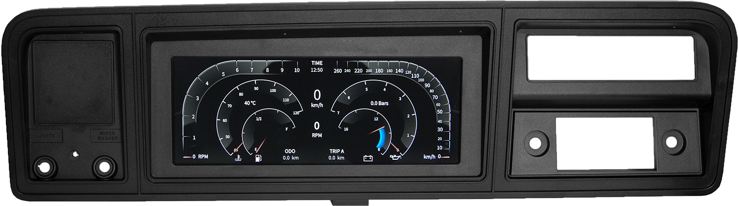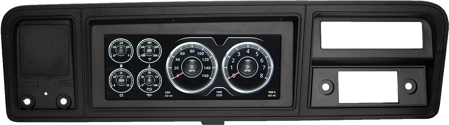 - Direct-fit instrumentation solution for 1973-1979 Ford Truck and 1978-1979 Ford Bronco that monitors speedometer, tachometer, water temperature, oil pressure, fuel level, and volts all in a high resolution and colorful display