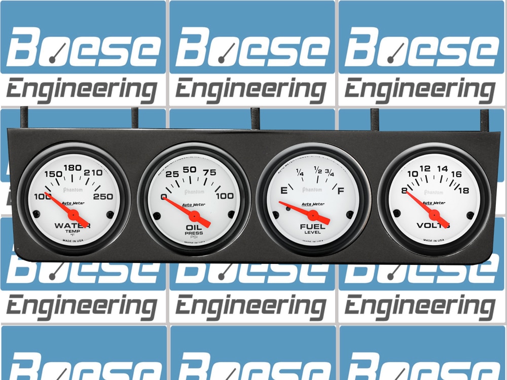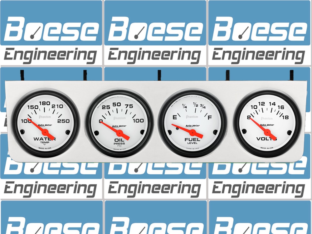 Includes aluminum 4 gauge under dash panel (12.25? x 3.25?) & 2 5/8? Auto Meter Phantom gauges.