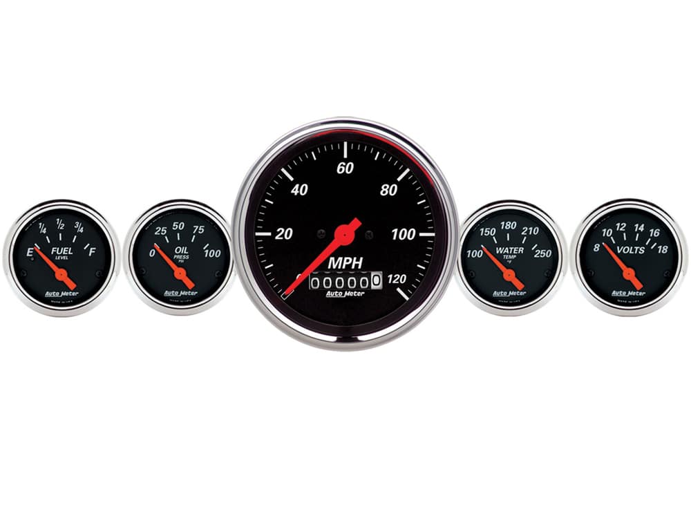 AUTO METER DESIGNER BLACK, GAUGE KIT, 5 PC., 3 3/8″ & 2 1/16″, ELEC. SPEEDOMETER