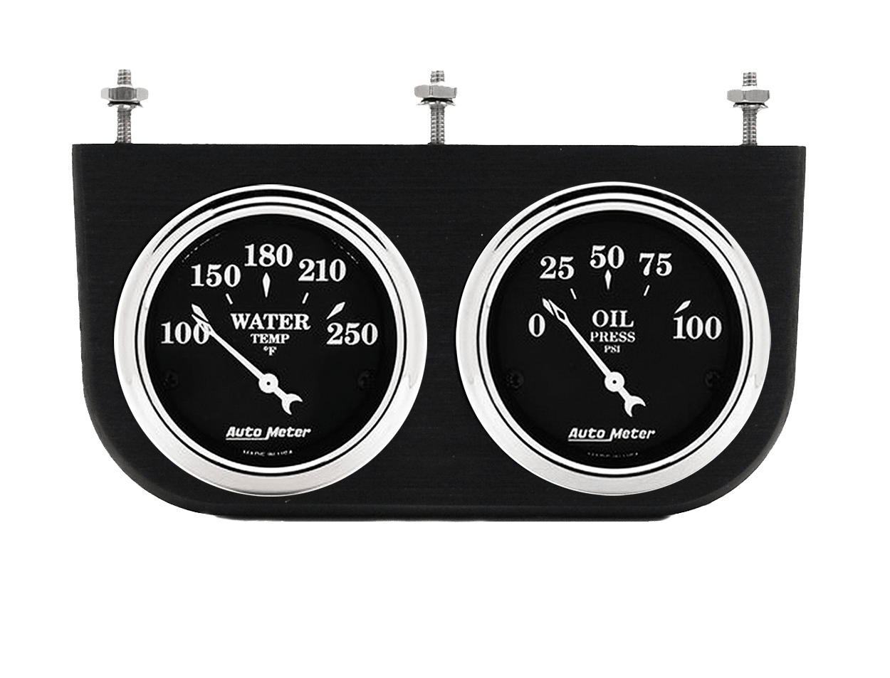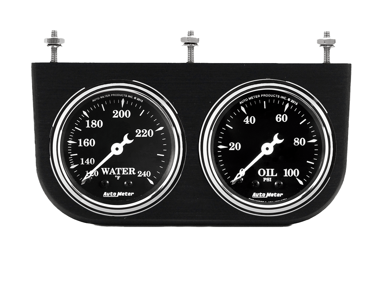 AutoMeter Old Tyme Black Oil Pressure & Water Temperature in Aluminum Gauge Panel