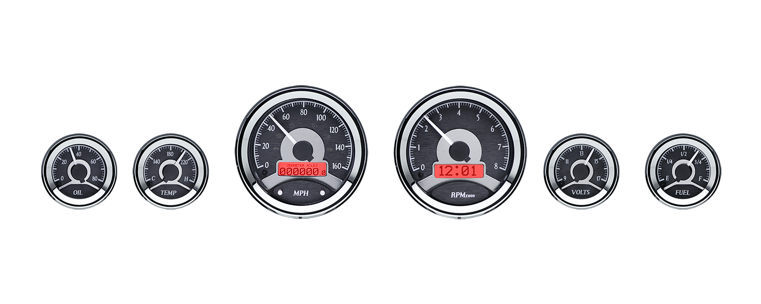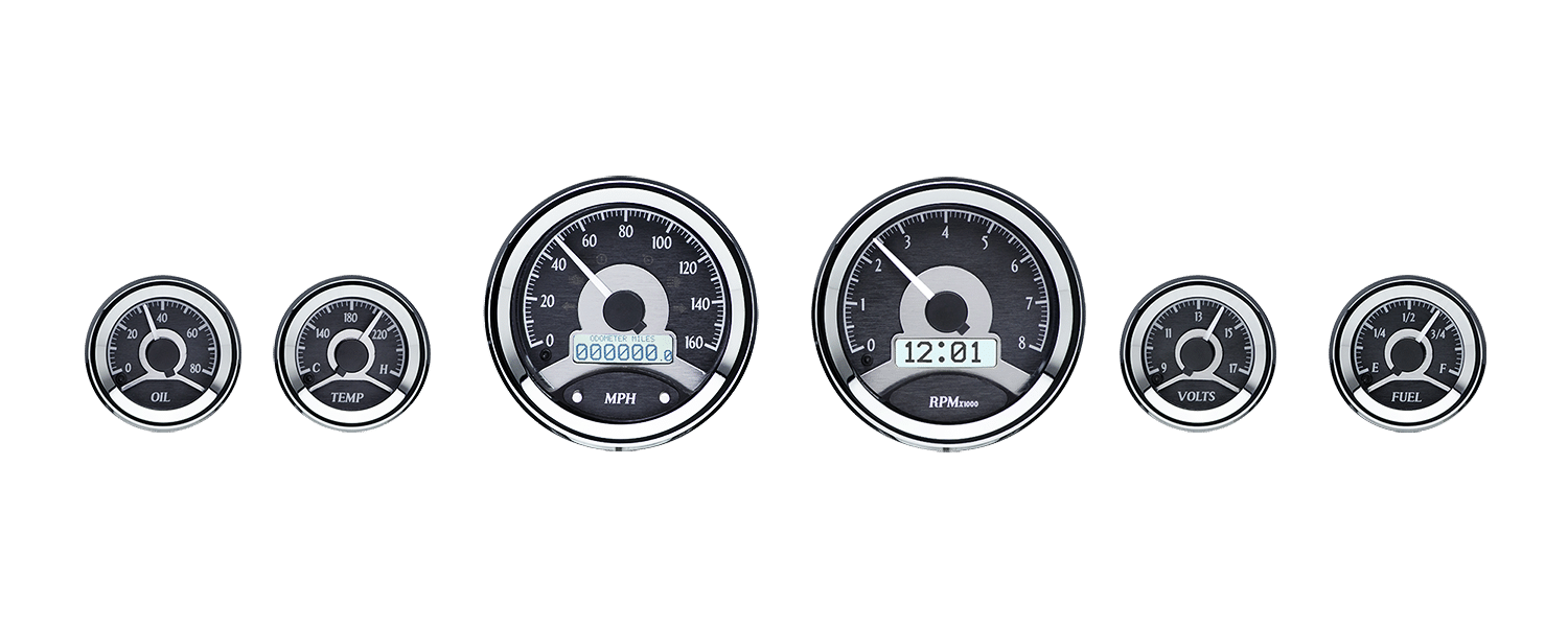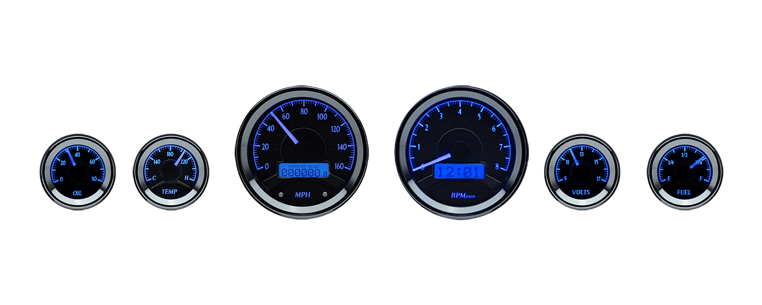 Dakota Digital Round Universal Analog 6 Gauge Black Alloy Kits (Choose lighting)